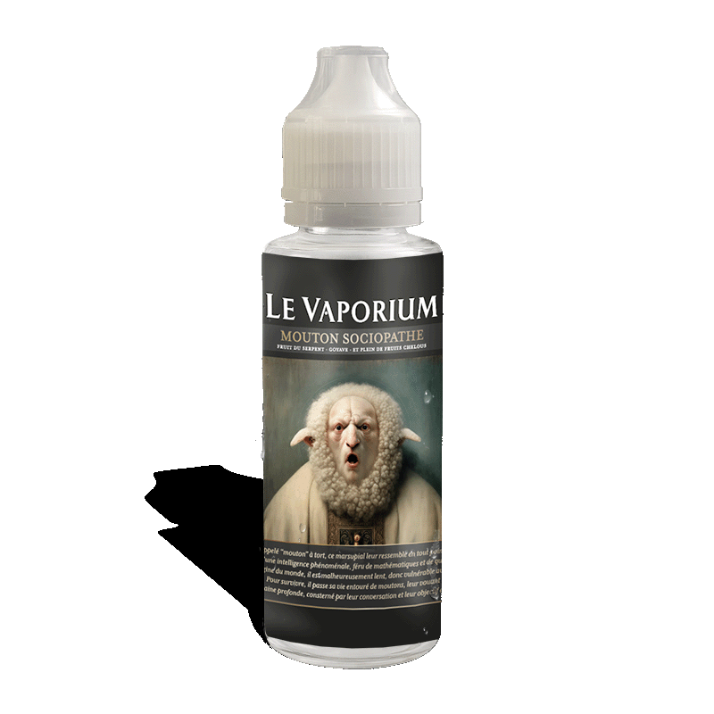 Le Mouton Sociopathe est un e-liquide imaginé, façonné par le Vaporium et fabriqué par le laboratoire Toutatis situé en Nouvelle-Aquitaine.