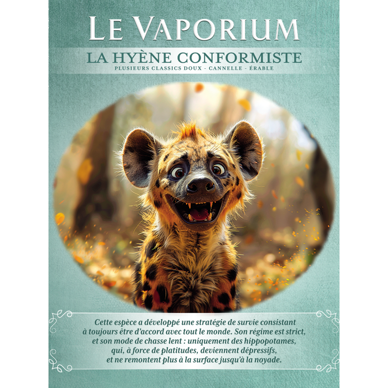 La Hyène Conformiste est un e-liquide imaginé, façonné par le Vaporium fabriqué par le laboratoire TOUTATIS situé en Nouvelle-Aquitaine.